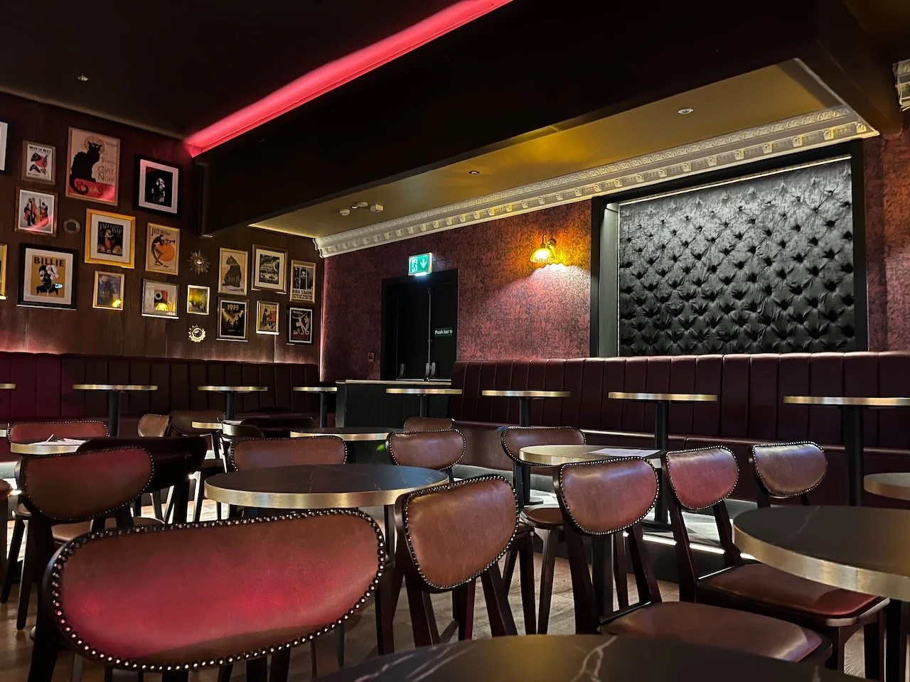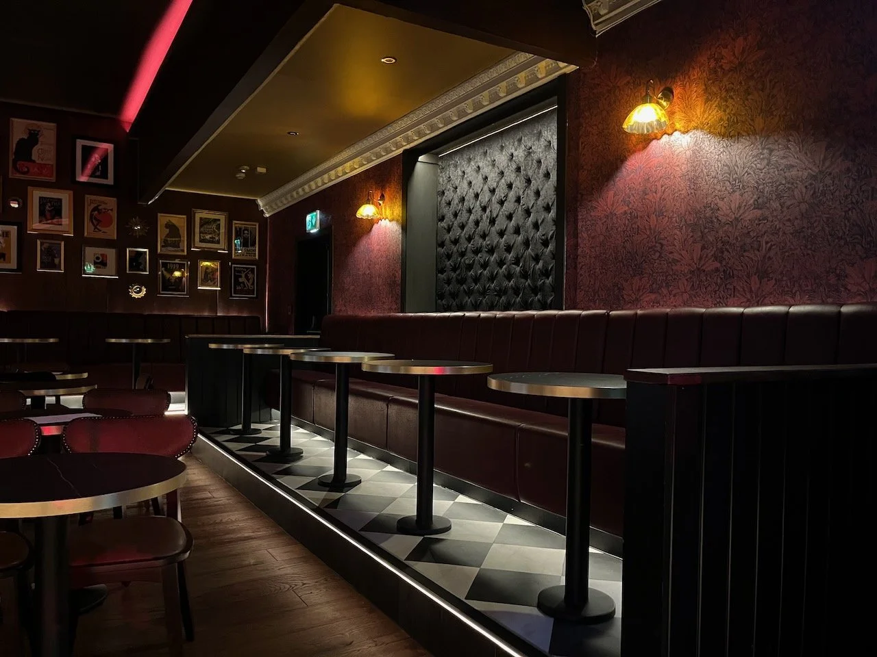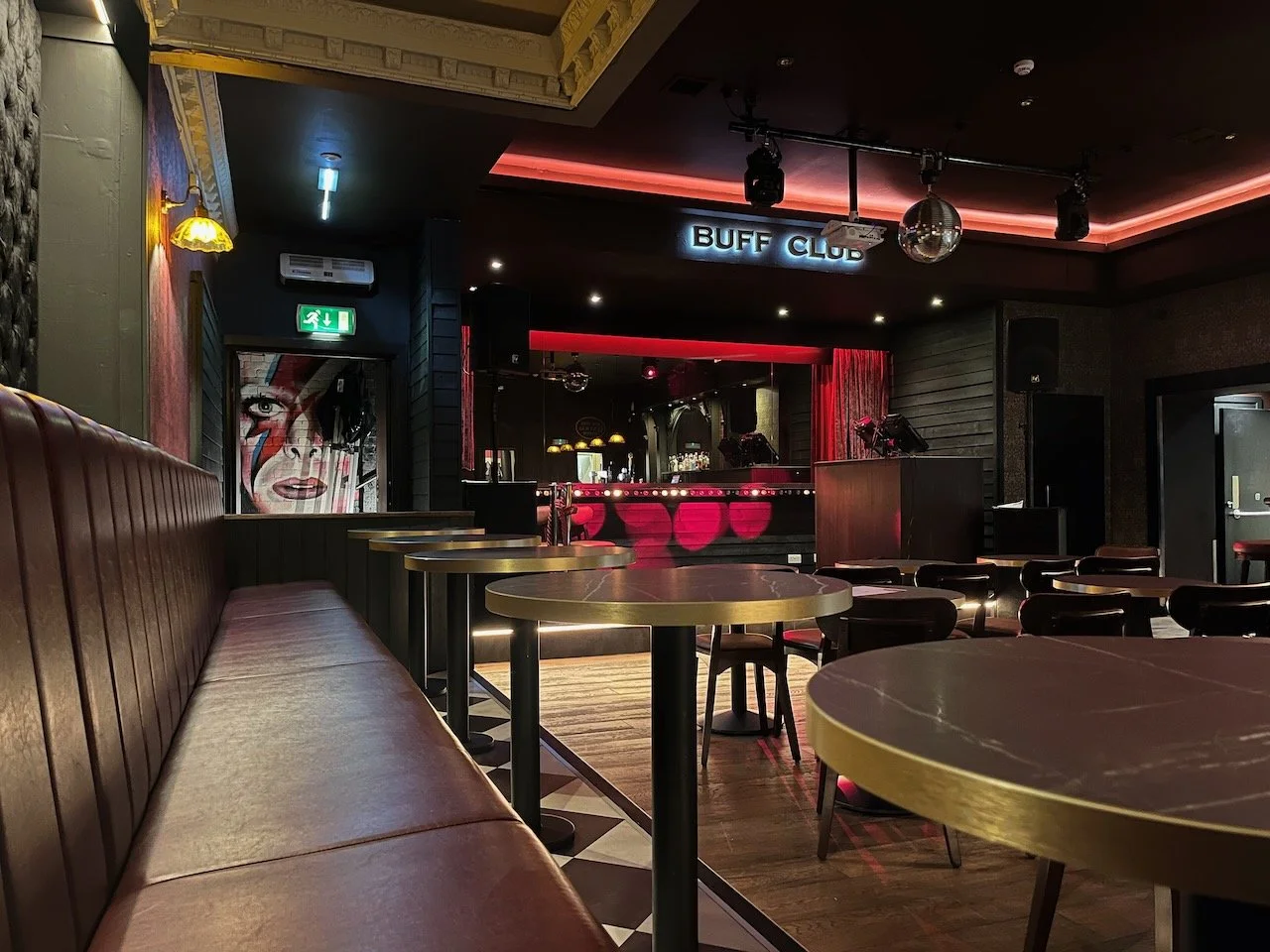 We were asked by the famous Buff Club to convert their feeder bar into a live jazz music venue. New faux leather raised seating, vintage chequerboard flooring & lighting, decadent wallpaper and rich velvety tones created a space to relax and enjoy some of the best live music in Glasgow.